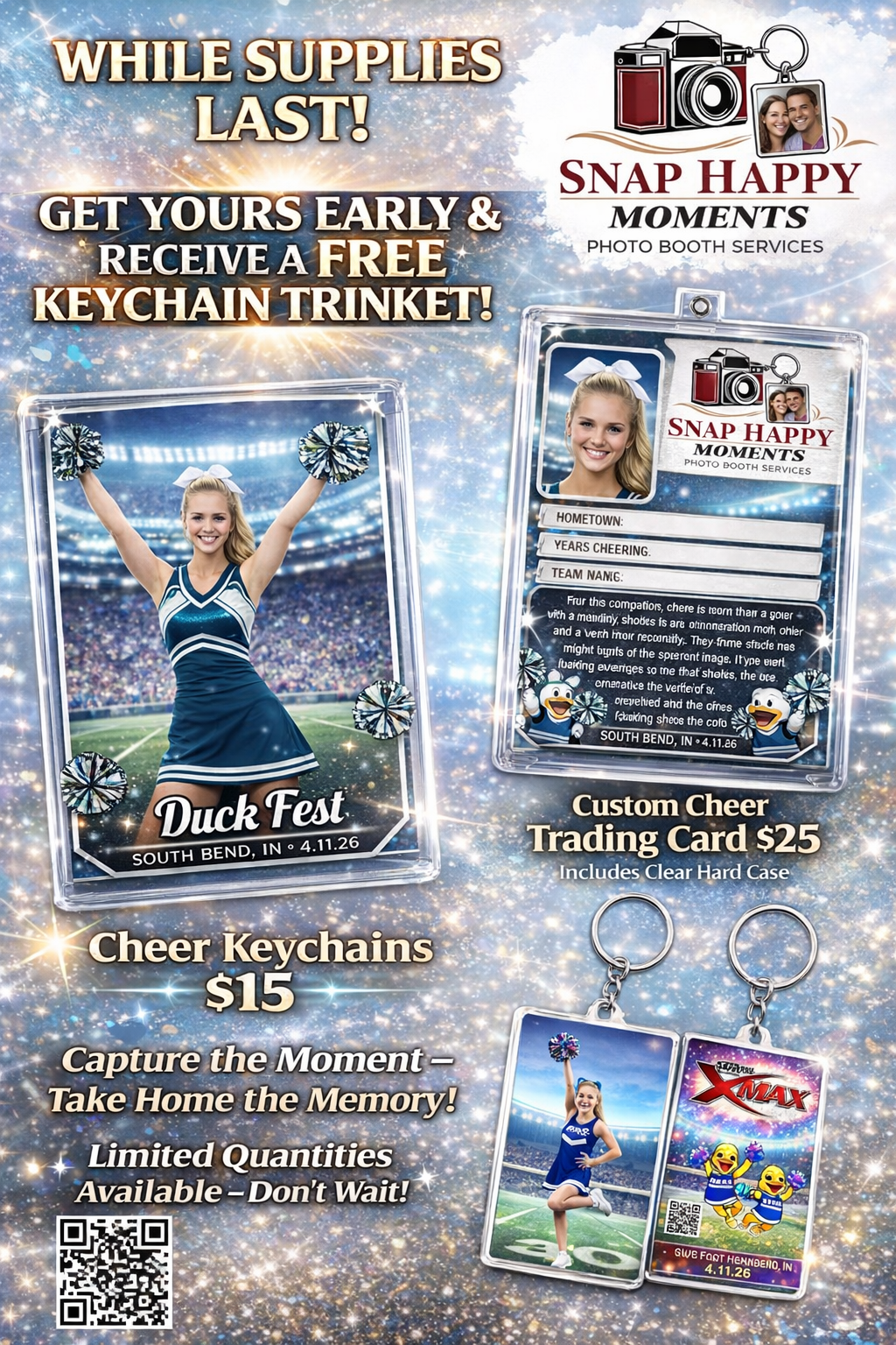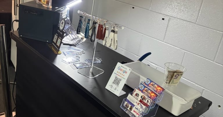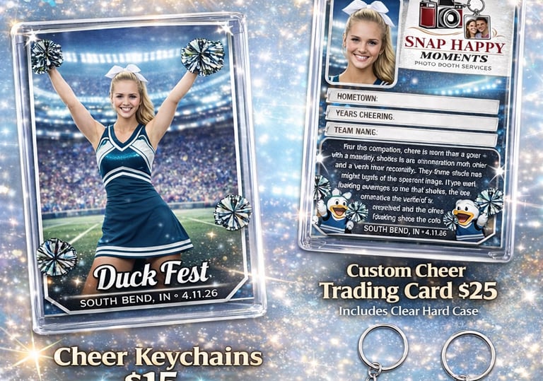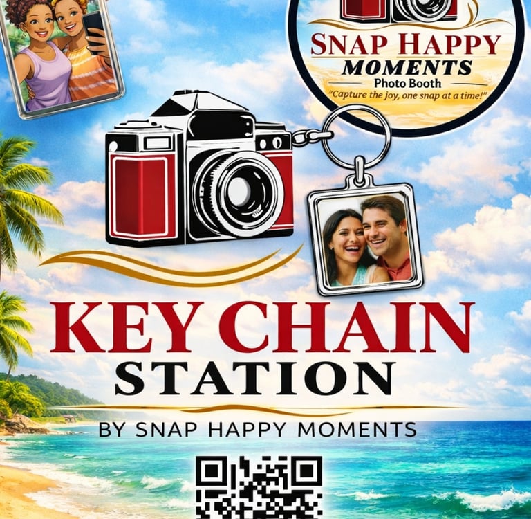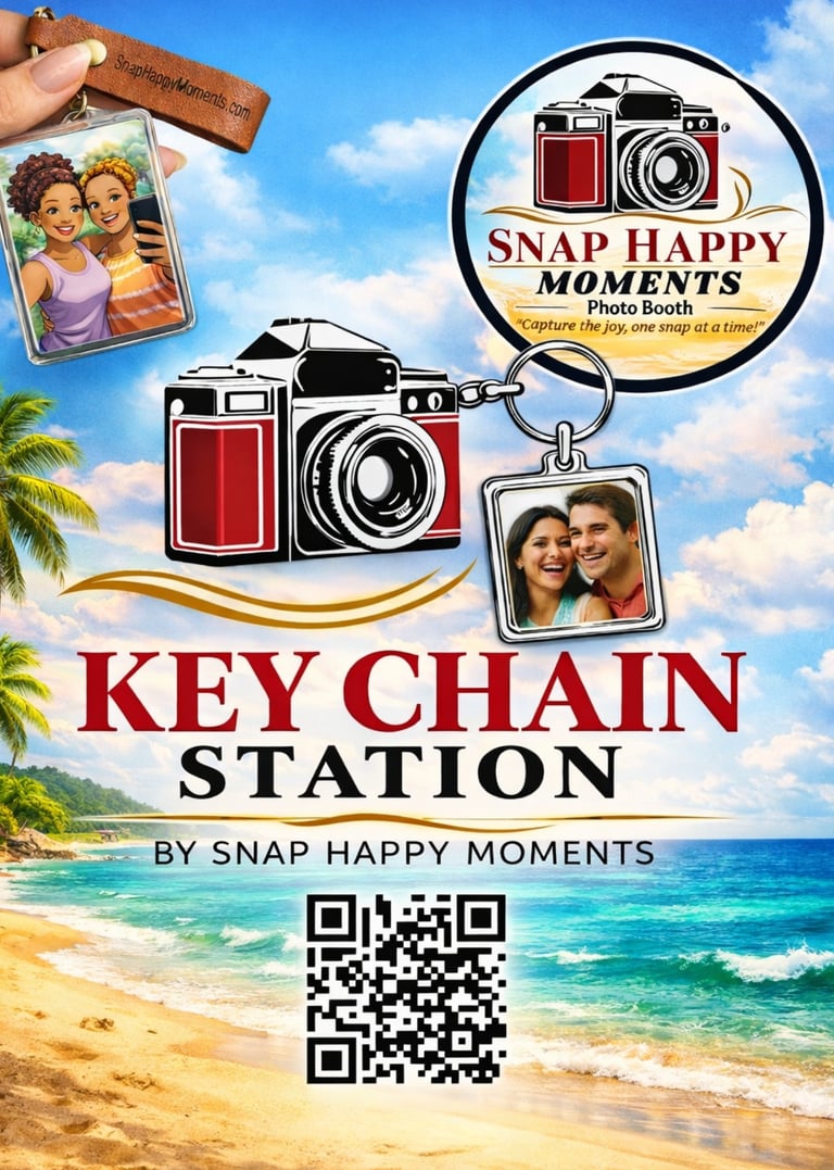 Take the memories to go! Our Keychain Station and Custom Trading Cards turn your instant photos into durable, high-quality keepsakes that guests can wear, share, and collect.